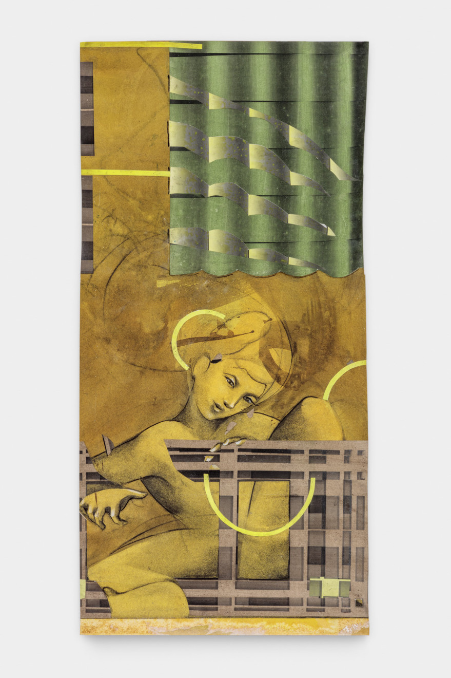- Watercolor, charcoal, and photocopy on paper